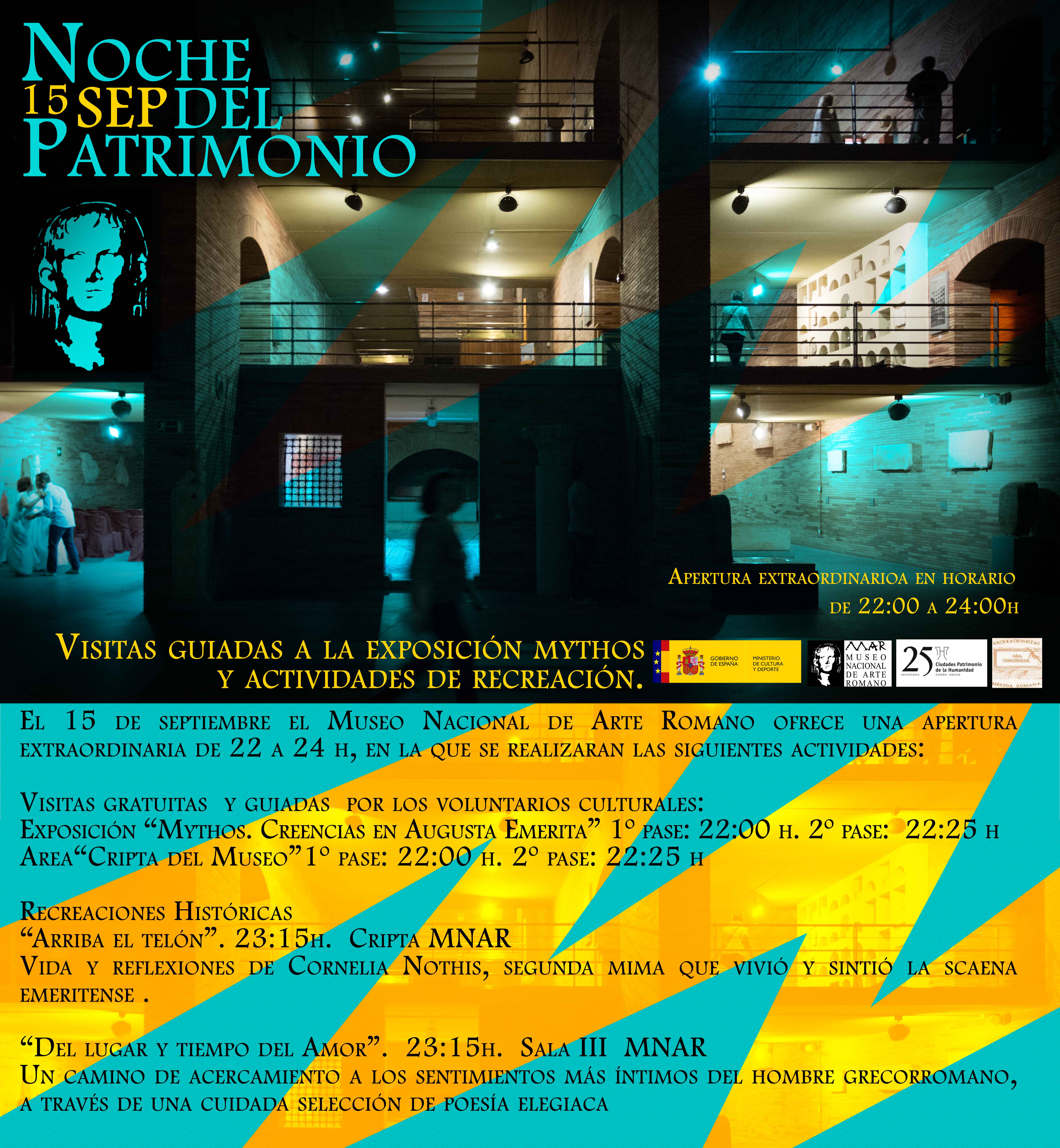 El Museo Nacional de Arte Romano se suma este sábado 15 de septiembre a la celebración de “La Noche del Patrimonio” que conmemora el 25 Aniversario de la creación del Grupo de Ciudades Patrimonio de la Humanidad, en el que Mérida está presente.