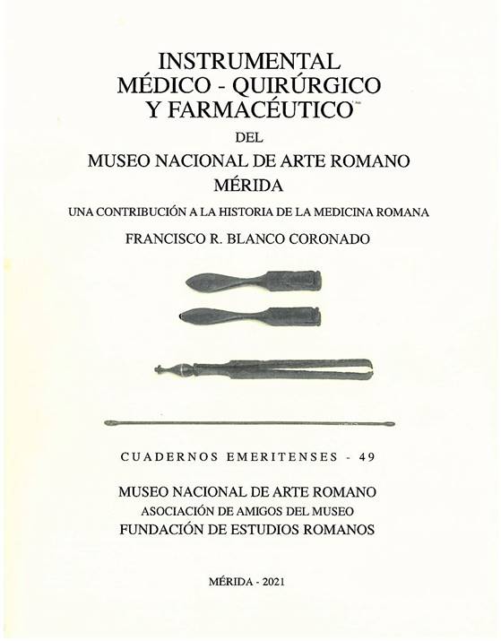 Hoy, a las 19,30 en el Salón de Actos del Museo, tendrá lugar la presentación del Cuaderno Emeritense nº 49: Instrumental Médico-Quirúrgico y Farmacéutico del Museo Nacional de Arte Romano. Una contribución a la historia de la medicina romana, de Dr. Francisco Ramón Blanco Coronado.