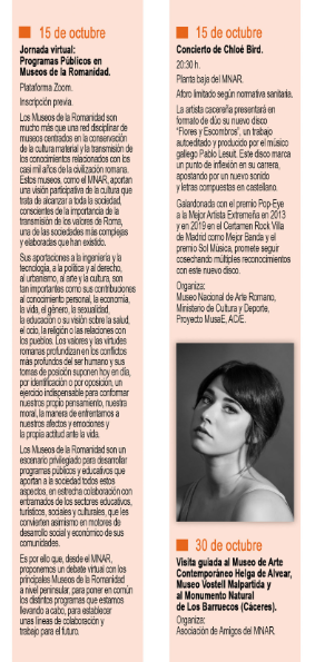 Adjuntamos la programación del MNAR para el mes de octubre de 2021. Esperamos que resulte de su interés.