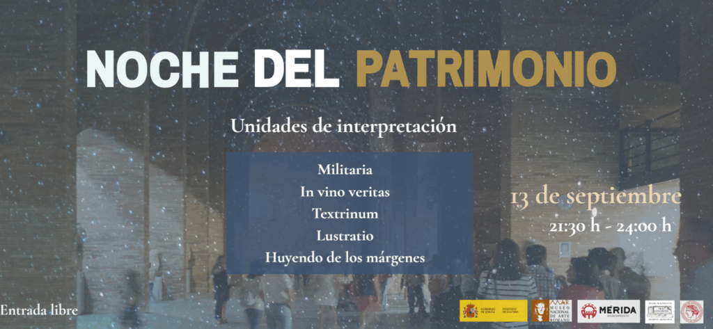 | 13 de septiembre Ubicación: nave principal del MNAR Hora: de 21:30 a 24:00 h Entrada libre Organiza: Museo Nacional de Arte Romano Colabora: Ayuntamiento de Mérida, Asociación Recreacionista Ara Concordiae y TANIT. Asociación Cultural de Divulgación Histórica Más información en el siguiente enlace |