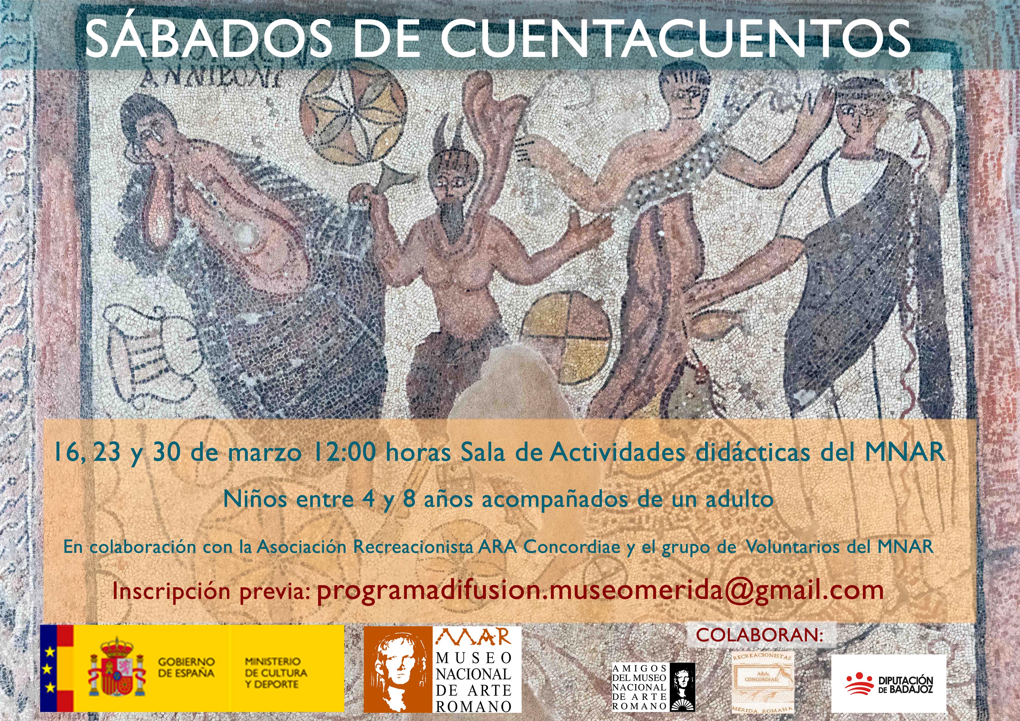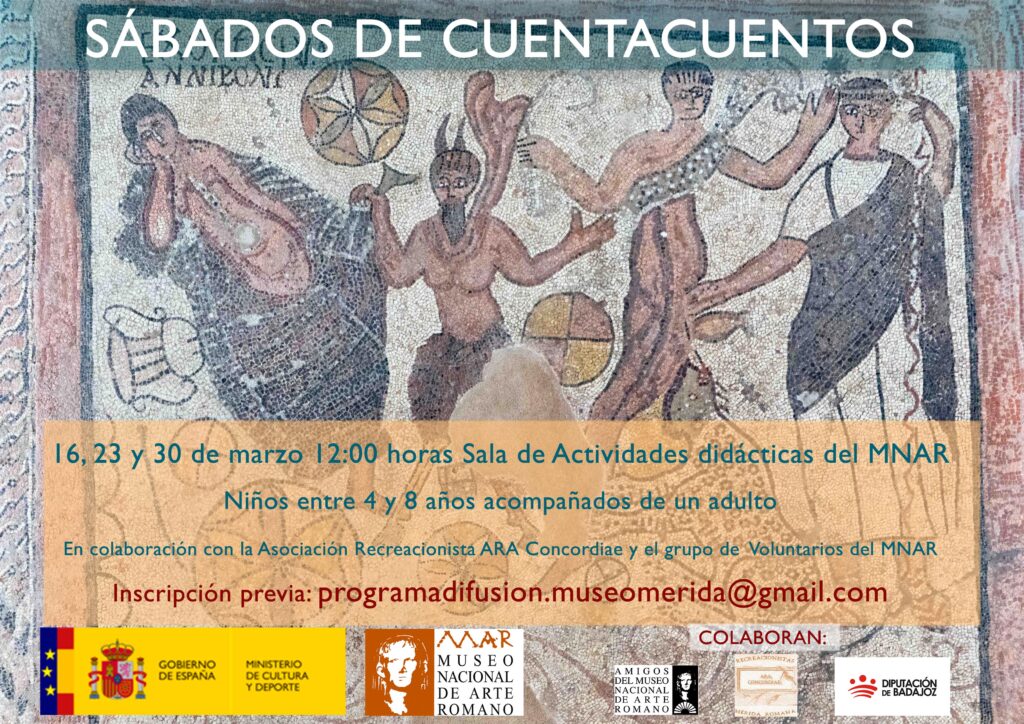 Un año más tienen lugar en el MNAR nuestros Sábados de Cuentacuentos. Este año se desarrollarán los días 16, 23 y 30 de marzo, a las 12:00 horas, en colaboración con la Asociación recreacionista ARA Concordiae y el grupo de Voluntarios Culturales del MNAR.