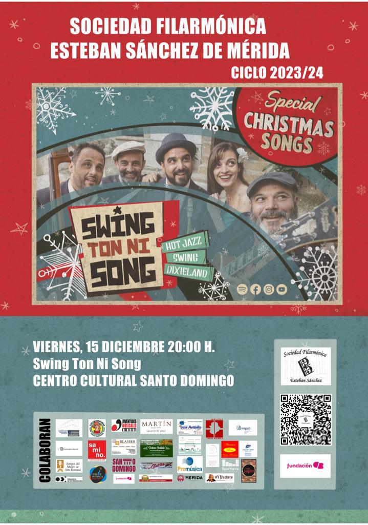 Tenemos el placer de comunicaros que este próximo viernes, día 15 de diciembre a las 20:00 horas, en el Auditorio del Centro Cultural Santo Domingo de la Fundación CB de Mérida, tendrá lugar nuestro ya tradicional Concierto de Navidad a cargo del grupo de Jazz SWING TON NI SONG & AURORA SAMINO, que vuelven un año más para deleitarnos, en clave de Swing, con un alegre y sugerente repertorio repleto de los más conocidos clásicos navideños para formar un maridaje perfecto entre música y diversión en estos tiempos inciertos.