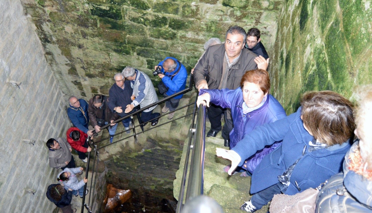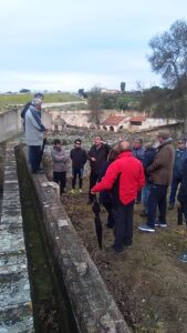 Como en otras ocasiones, con gran profesionalidad y entusiasmo, y haciendo gala de un gran conocimiento del tema, nos enseñaron los distintos componentes de este magnífico monumento emeritense: la “sangradera” (aliviadero de superficie y caseta de válvulas del desagüe de la presa), “catas-museo” (catas arqueológicas para poder contemplar la estructura interior de la presa) “bocines” (torres de toma de la presa), elementos visibles del sistema hidráulico de la toma profunda (torre-respiradero, acceso a galería profunda…) y los del sistema hidráulico de la toma alta.