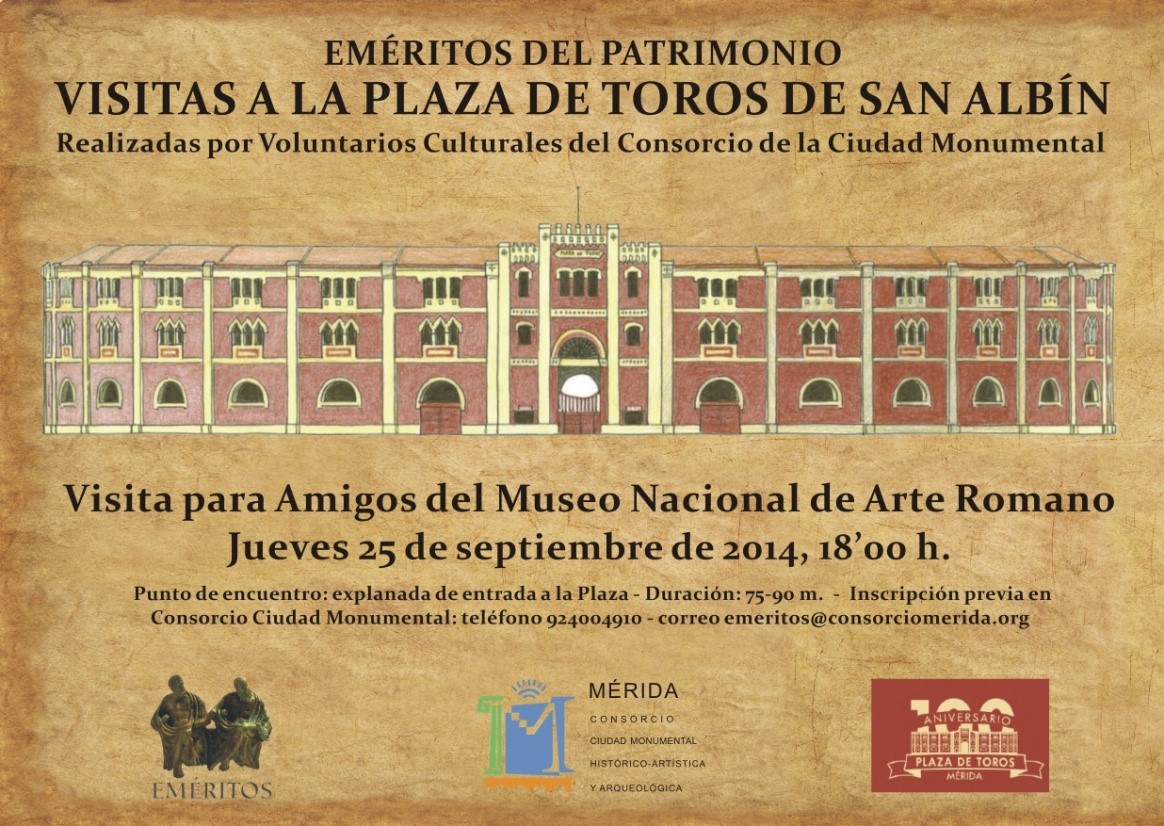 Mérida, con ocasión de su centenario y propuesta como Bien de Interés Cultural. Se trató de una visita patrimonial, con contenidos esencialmente históricos y arquitectónicos, relativos al edificio, los cien años de historia de la Plaza y la tradición taurina en Mérida. Además de Sebastián Moreno, emérito que explicó de forma amena la parte histórica y arquitectónica, contamos con la colaboración de todo un aficionado y experto en tauromaquia como fue Demetrio Broncano que nos entusiasmó con sus explicaciones sobre la parte taurina de la visita.