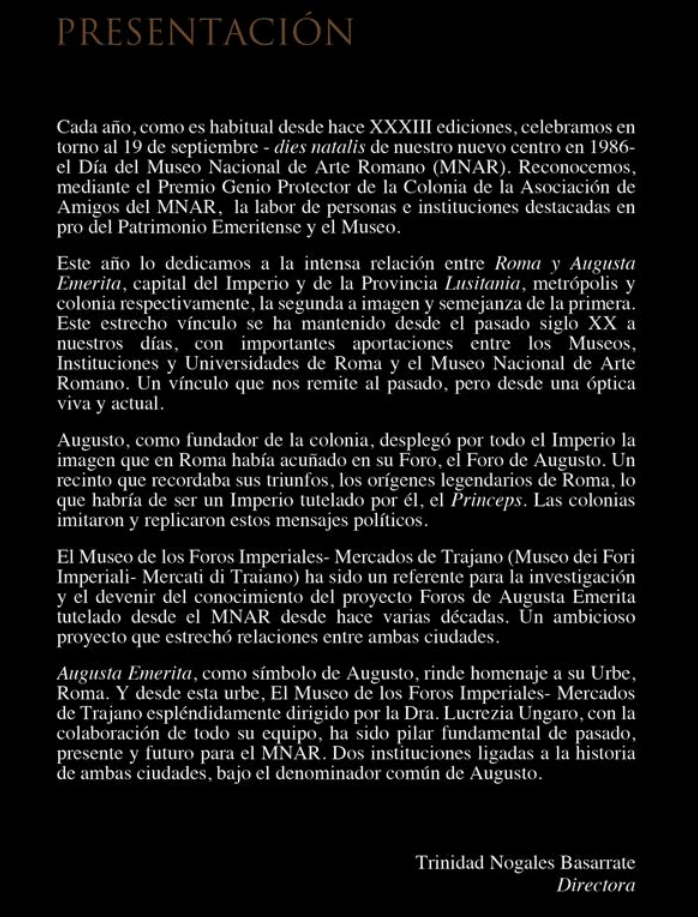 El Museo Nacional de Arte Romano le invita a la celebración del XXXIII Día del Museo que tendrá lugar el jueves 19 de septiembre a las 20 h. en la sede del museo.
